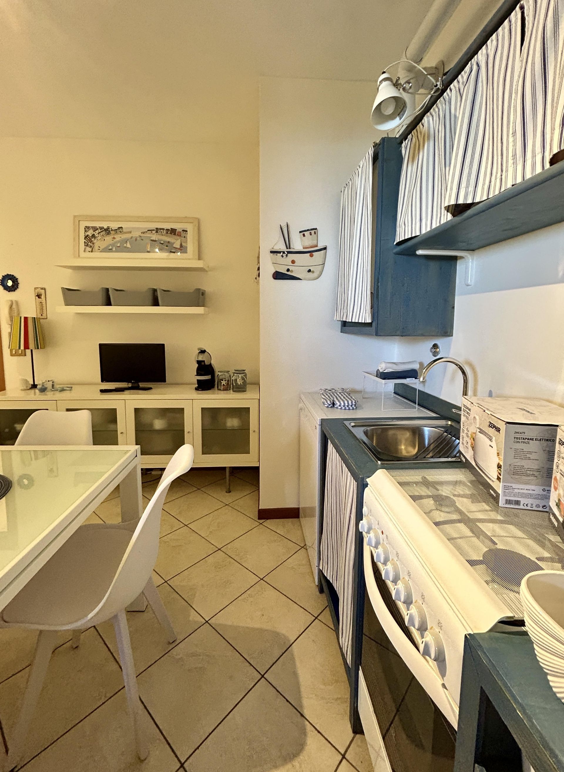 Posto auto privato scoperto al piano terra. L'abitazione viene venduta con l'arredo, ispirato al tema marino, dove colori chiari e raffinati tocchi di blu e azzurro, creano un'atmosfera rilassante e armoniosa. Richiesta €.146.000 - cl.D 130