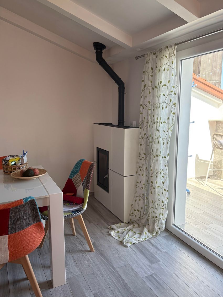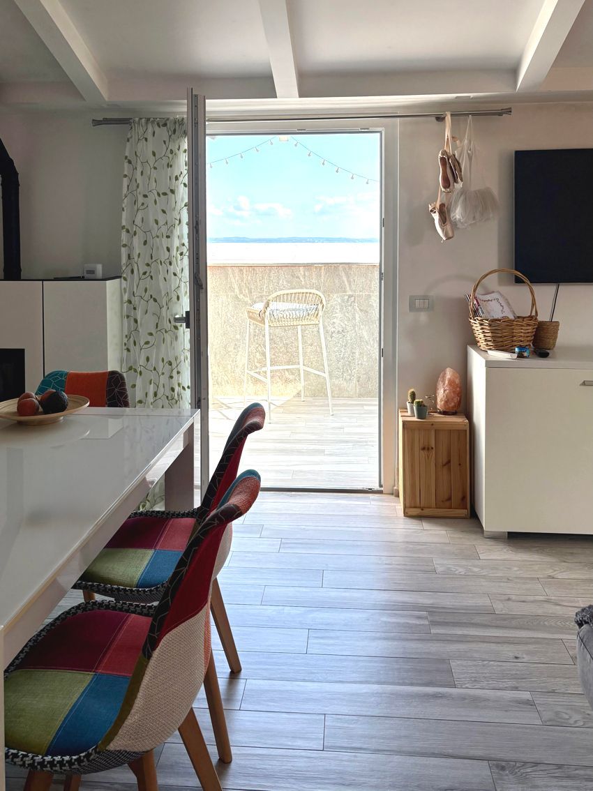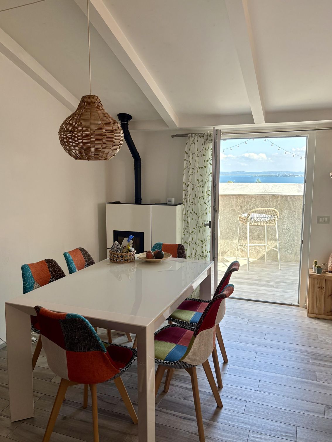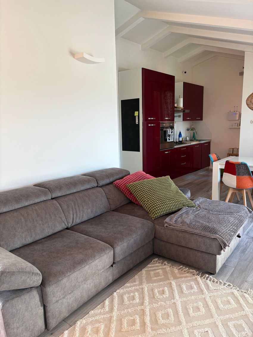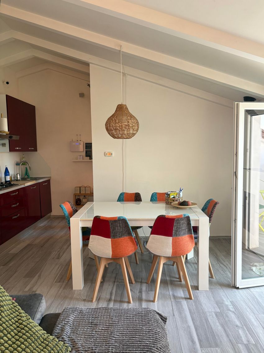 L'ampio soggiorno open space si apre su una terrazza a tasca nel tetto, perfetta per rilassarsi e godere del panorama. Due camere da letto spaziose offrono la giusta privacy, mentre il bagno finestrato aggiunge un tocco di eleganza. La scala esterna privata conduce a un ballatoio d'ingresso accogliente. Completano l'immobile un comodo garage e una cantina al piano terra, oltre a un giardinetto piantumato con ulivi, perfetto per momenti di relax all'aperto.