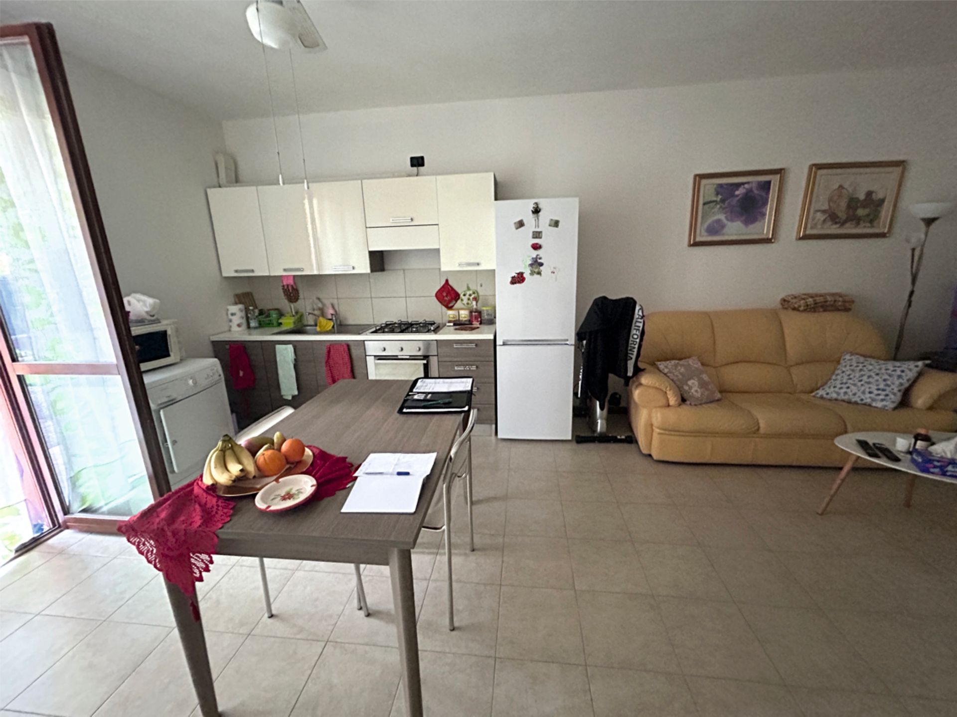 L'ampio balcone regala una vista panoramica mozzafiato, luogo ideale per rilassarsi al sole. L'appartamento è arredato e climatizzato, pronto per essere abitato. Non mancano una cantina e ampi parcheggi pubblici nelle vicinanze.